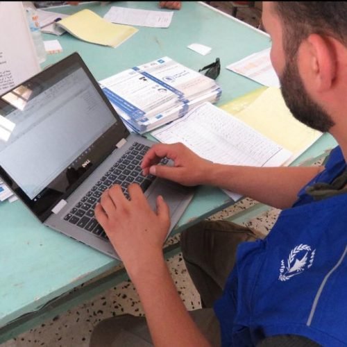 Distributing food aid to displaced families
