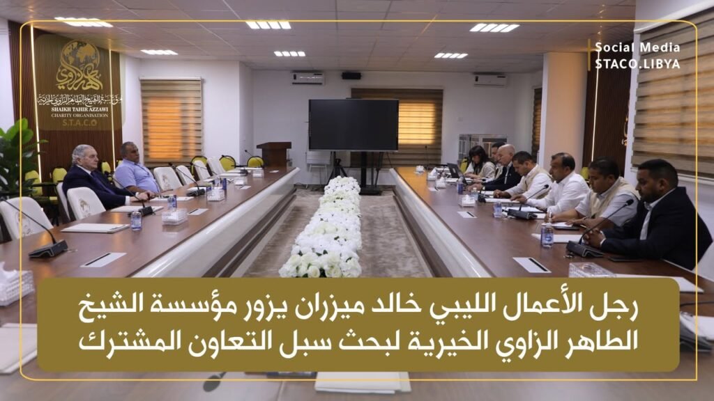 The Chairman of the Board of Directors of Sheikh Taher Al-Zawi Charitable Foundation, Eng. Salem Al-Qamoudi, received the Libyan businessman Khaled Mizran and his accompanying delegation at the Foundation’s headquarters in Tripoli, in the presence of a number of department directors and heads of research centers.