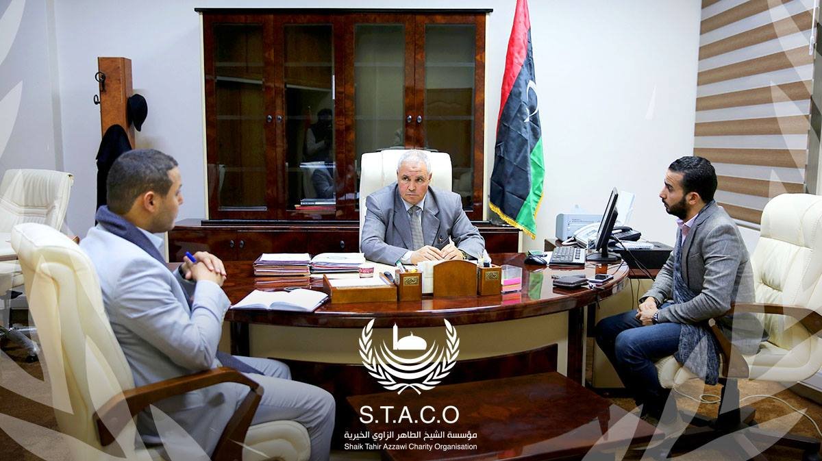 His Excellency the Minister of Displaced Affairs at the Prime Minister met with the delegate of the International Organization for Migration (IOM) and the Chairman of the Board of Directors of the Sheikh Al-Taher Al-Zawi Charitable Foundation on the file of the displaced in Libya.