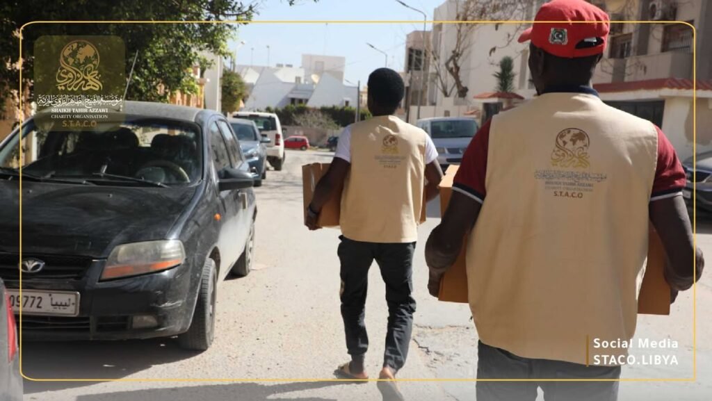 As part of its humanitarian efforts during the holy month of Ramadan, Sheikh Taher Al-Zawi Charitable Foundation (STACO) launched a food basket distribution campaign targeting needy families, low-income people and displaced people in Derna in the western region, as part of its commitment to alleviating living burdens and enhancing social solidarity during the holy month.