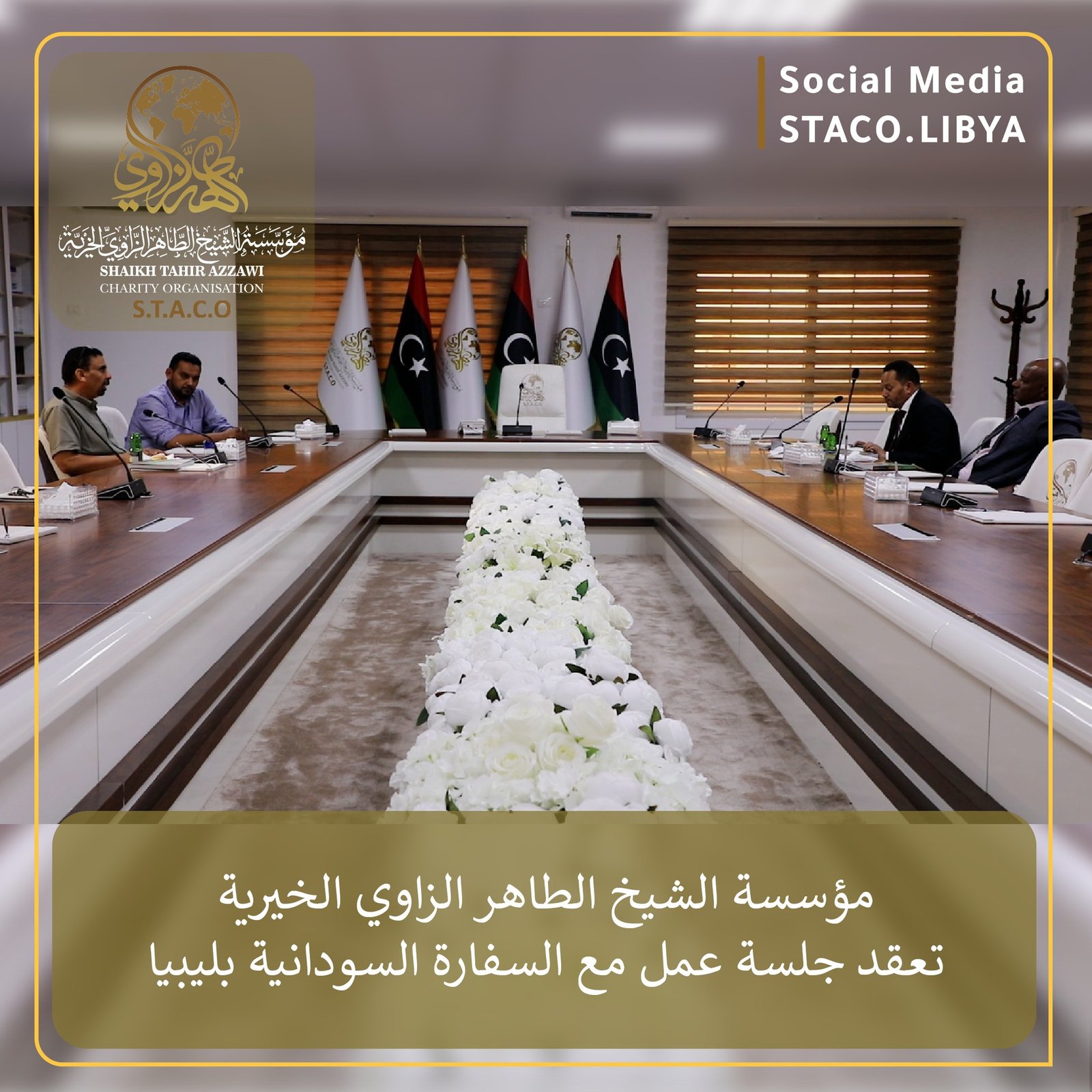 A working meeting was held today, Thursday, August 23, 2024, between representatives of Sheikh Taher Al-Zawi Charity Foundation and Mr. Siddiq Abdul-Baqi, Consul of the State of Sudan in Tripoli, in the presence of the Embassy Advisor, Mr. Muhammad Ahmed.