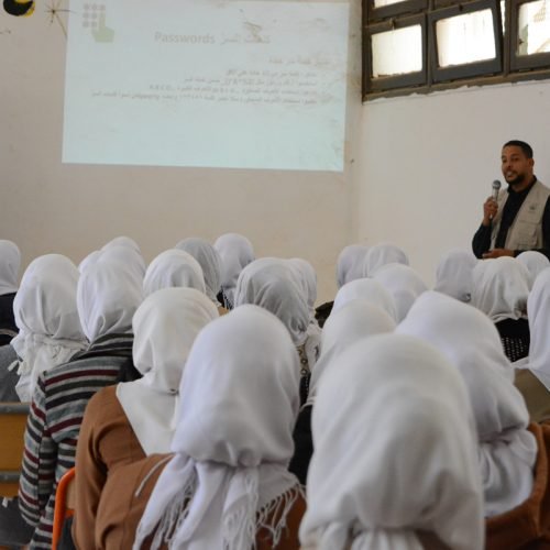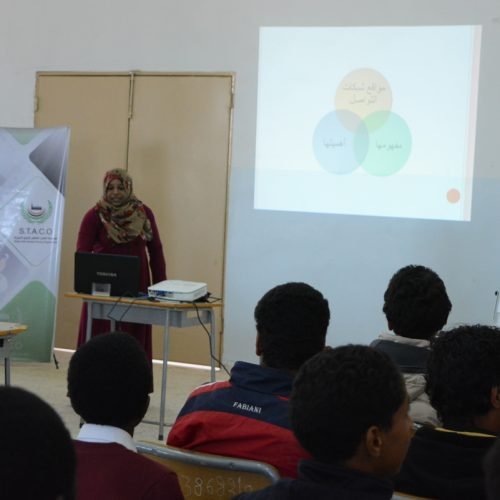 A set of axes were presented, including: Coverage of the social aspect by the social worker, A. Fatima Muhammad al-Mahdi and Psychologist, under the supervision of Professor Zainab Misbah Muhammad, in charge of the psychological support office in education, Sebha, and on the digital safety side, the stadium, Hassan Ali Habib, responsible for the psychological support team in the institution, and the legal side, lawyer Saleh Salem Hatita.