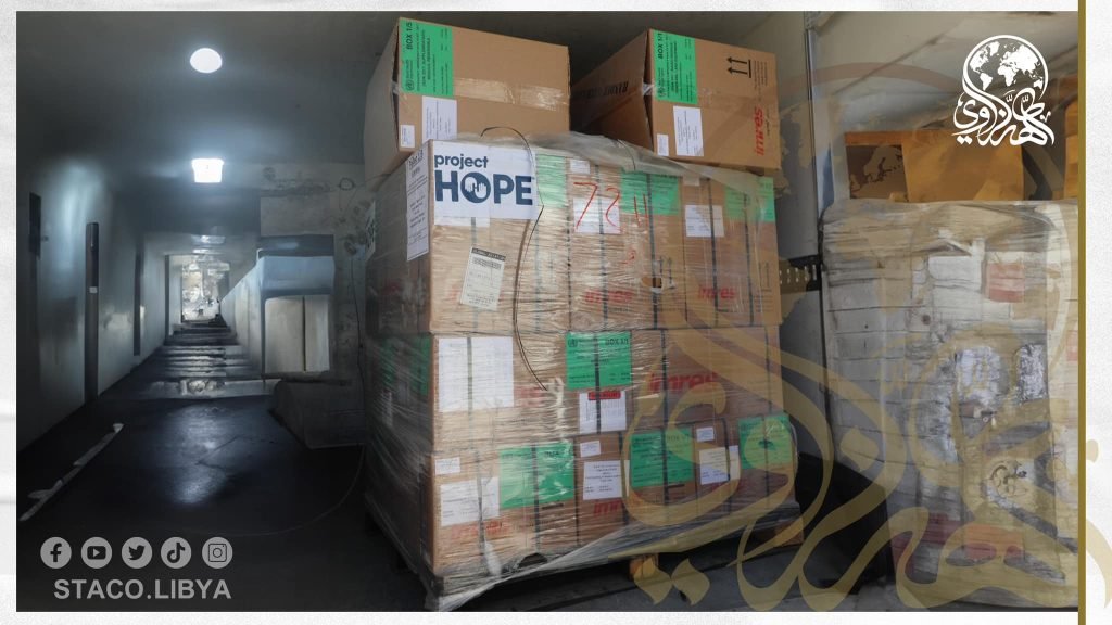 As part of its cooperative efforts with international organizations to provide a safe and sound life, the Sheikh Tahir Al-Zzawi charity organization received a shipment of medicines and medical supplies of all kinds from the American Project Hope Organization.